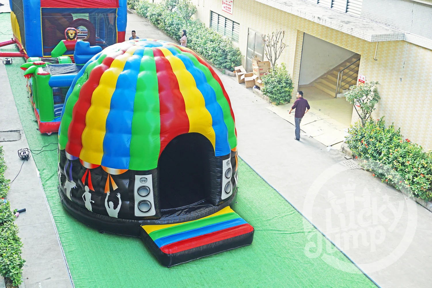Erhöhen Sie die Energie auf jeden Fall mit PANGAOAufblasbares Bounce-Haus der Lautsprecher kuppel-Ein mutiges, kreatives Schlauchboot, das musik inspiriertes Design mit sicherem, aktivem Spiel verbindet.