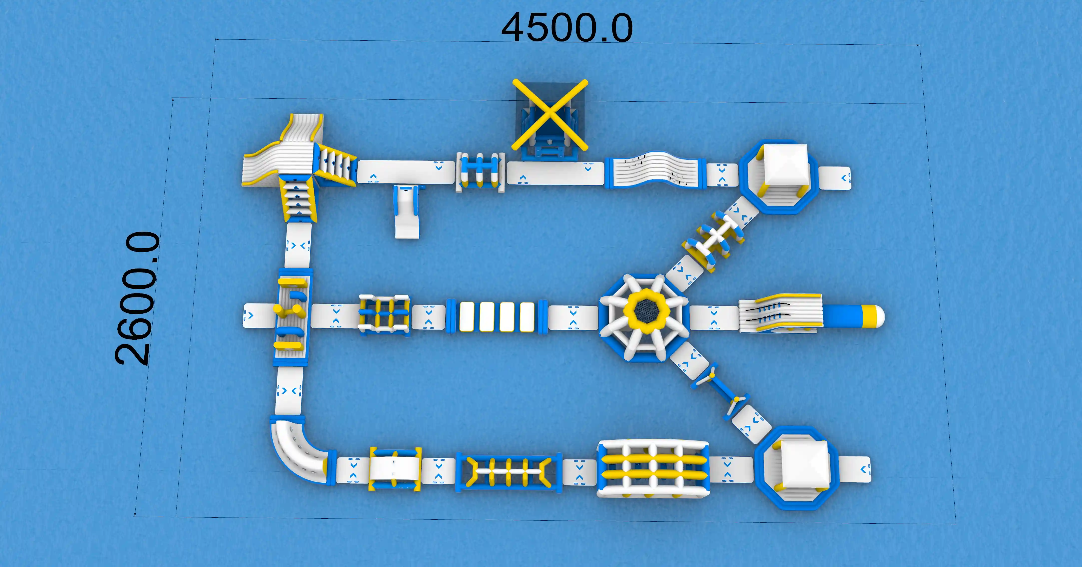 45m×26mの大型インフレータブルウォーターパークの特徴:
