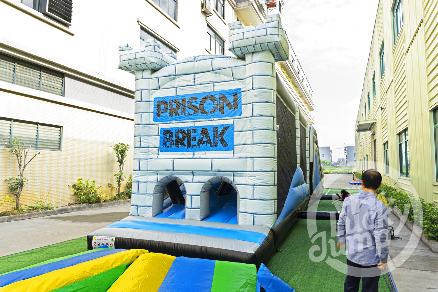 Traga emoção e estratégia junto com o nossoPrison Break Inflável Obstacle Course, Uma atração única projetada para experiências emocionantes de jogo e construção de equipes. ApresentandoRenderizações realistas cena 3DEste curso mergulha os participantes em um ambiente dinâmico com tema de fuga-perfeito para eventos, festivais ou centros de entretenimento.